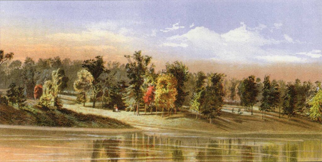 Olmsted, working with several partners during his career, continued to design public grounds for the rapidly expanding city. He worked with the Buffalo Board of Park Commissioners, the state chartered commission which built and maintained those grounds placed by law under their purview. The commissioners, unpaid positions serving for set terms, were appointed by the city’s mayor (who was ex officio member) after approval by the city council. After Mr. Olmsted’s retirement from active practice in 1897 due to declining health, his sons assumed control of his firm and continued a relationship with Buffalo that ran through 1915. In that year, the city’s governmental structure was completely overhauled via a new state charter; one change was that its independent Board of Park Commissioners was dissolved.